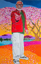Self Portrait With Cherry Blossom 60x90cm acrylic on canvas 2025